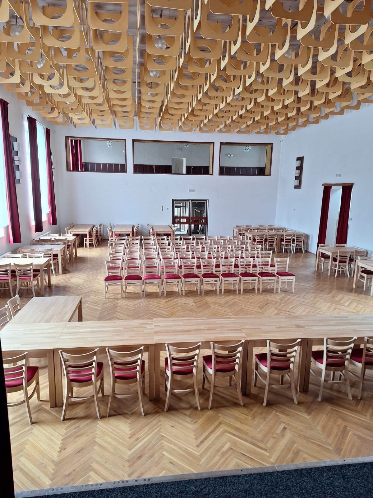 Obec Višňová pořídila nové vybavení do kulturního domu: 59 stolů a 300 židlí budou využívat návštěvníci KD a pořadatelé akcí pro veřejnost.